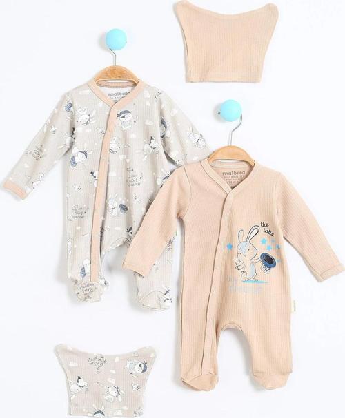 Maibella Sevimli Sihirbaz Tavşan Desen Çıtçıtlı Şapkalı Pamuklu Uzun Kollu Kışlık Erkek Bebek Tulum 4'lü Seti