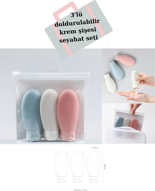 Çok Amaçlı İskandinav Tarz 3'lü Doldurulabilir Çantalı Seyahat Tipi Şişe Seti | Boş Krem Şişesi Kozmetik Dolum Seti Taşıma Çantalı Seyahat Yaparken Kişisel Eşyalarınızı Evde Bırakmanıza Gerek Yok. Şampuan, Krem, Duş Jeli Gibi Kişisel Bakım Ürünlerini Her Zaman Yer Kaplamadan Rahatlıkla Yanınızda Taşıyabilirsiniz. Açılma Veya Dökülme Yapmaz. Kozmetik Ürünlerinizi Rahatlıkla Taşıyabilirsiniz. İngilizce ürün etiketi mevcuttur.
