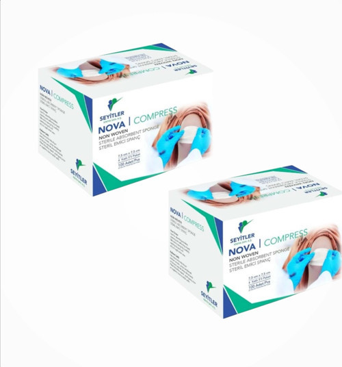 Seyitler Nova Nonwoven Kompres Steril 7,5cm x 7,5cm Spanç 100'lü Kutu - 2 Kutu