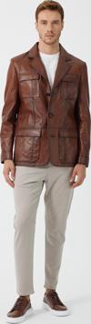 By Serco Erkek Deri Biyeli Kapak Cepli Mont 0620661 Kahverengi - Image 1