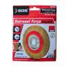 SGS Dairesel Saçaklı Tel Fırça pirinç kaplı çelik telli bir yüzey temizleme aparatıdır. Demir profillerin, şasi ve jantların temizlenmesi, Kaynak sonrası çapak alma, pas, boya ve kir gibi yüzey kalıntılarını temizlemek ve ayrıca dekoratif yüzey hazırlığı (eskitme, pürüzlendirme) için kullanılır. Maksimum 6000 devirdir. Ürün mutlaka koruyucu ekipman ile kullanılmalıdır.