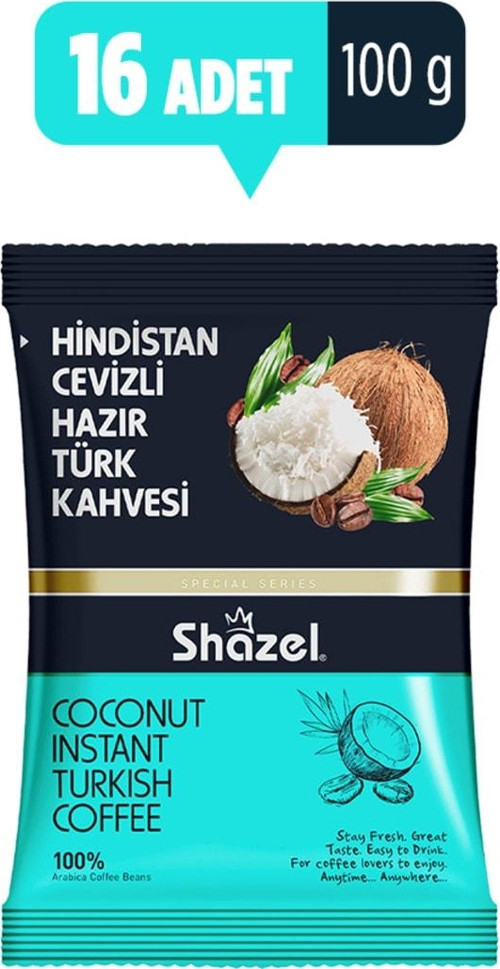 Shazel Kahve markasının yüksek kalite standartları ve doğal içerikler kullanma anlayışı, Hindistan Cevizli Hazır Türk Kahvesi'ni özel ve çarpıcı bir ürün haline getirir. Türk kahvesi tutkunları için benzersiz bir deneyim sunan bu ürün, kahve severlerin damaklarında unutulmaz bir iz bırakacaktır.