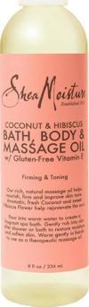 Shea Moisture Coconut & Hibiscus Masaj Yağının nazik bakımına teslim olun ve stresin vücudunuzdan uzaklaşmasını izleyin.