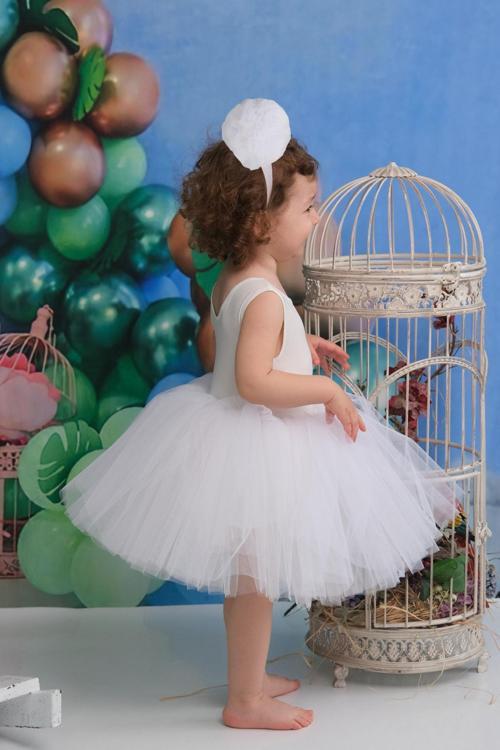 Beyaz Balerin Model Elbise, Bandana Takımı - Çocuk Abiye Elbise. Şık ve zarif beyaz balerin model elbise, bandana takımı, doğum günü, parti ve düğün gibi özel günlerde kullanılabilir.