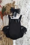 Cadılar Bayramı Siyah Deri Detaylı Bebek Kız Tulum Ve Bandana 18 Ay Siyah
