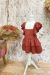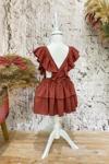 Shecco Babba Fırfırlı Kiremit Kız Çocuk Keten Elbise Bandana Takım Doğum Günü Elbisesi 6 Yaş Kırmızı