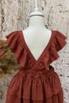 Shecco Babba Fırfırlı Kiremit Kız Çocuk Keten Elbise Bandana Takım 1-10 Yaş Doğum Günü Elbisesi 6 Yaş Kırmızı