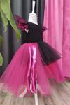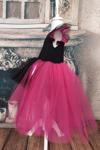 Shecco Babba Fuşya Siyah Asimetrik Kız Çocuk Tütü Elbise, Doğum Günü Elbisesi, Top Bandana 4 Yaş Renkli