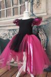 Fuşya Siyah Asimetrik Kız Çocuk Tütü Elbise, Doğum Günü Elbisesi, Top Bandana Tütü Fuşya Abiye Elbiseyi, doğum günü elbisesi, çocuk parti elbisesi, çocuk düğün elbisesi, ya da diğer özel günlerde kullanabilirsiniz. Etek bölümünde uzun kısımda yan yana 3 fuşya tül, kısa kızmında ise 2 siyah tül bulunmaktadır. Üst beden kısmı siyah renkte esnek likralı kumaştır. Siyah renk pon pon tül bandana ile tamamlanmıştır. Eteğin alt kısmında %100 pamuk etek astarı bulunmaktadır. Paket İçeriği