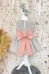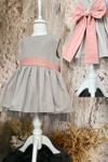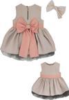 Kız Çocuk Gri Pembe Fiyonklu Tütü Elbise Bandana Takım Paket İçeriği