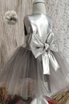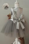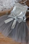 Kız Çocuk Arkadan Fiyonklu Gümüş Gri Tütü Elbise Bandana Takım Paket İçeriği
