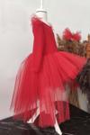 Shecco Babba Kız Çocuk Asimetrik Kırmızı Tütü Noel Elbise, Uzun Kollu Kırmızı Doğum Günü Elbisesi, Bandana 4 Yaş Kırmızı