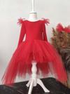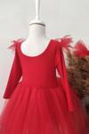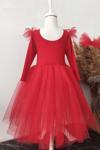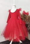 Shecco Babba Kız Çocuk Asimetrik Tütü Noel Elbise, Uzun Kollu Doğum Günü Elbisesi, Bandana 4 Yaş Kırmızı