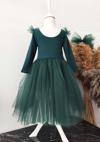 Shecco Babba Kız Çocuk Asimetrik Yeşil Tütü Noel Elbise, Uzun Kollu Yeşil Doğum Günü Elbisesi, Bandana 7 Yaş Yeşil