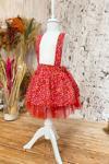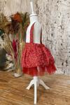 Etek bölümünde 2 kat kristal kırmızı tül bulunmaktadır.