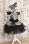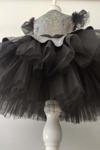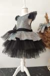 Shecco Babba Kız Çocuk Siyah Fiyonklu Tüllü Abiye Elbise, Parti Elbisesi, Doğum Günü Abiye Elbise, Bandana 4 Yaş Siyah