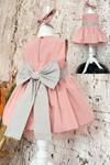 Kız Çocuk Pembe Gri Fiyonklu Tütü Elbise Bandana Takım Paket İçeriği