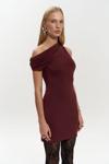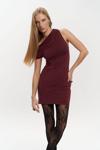 Streç kumaştan üretilmiş, düz kesimli mini ve uzun boy seçeneklerine sahip. Kayık yakalı, düşük omuzlu ve asimetrik tasarım.