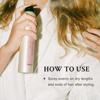 - Şekillendirme sonrası kuru saçın boylarına ve uçlarına eşit şekilde püskürtün.