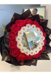 - Kırmızı güllerin zarifliği, beyaz papatyaların sade güzelliğiyle tamamlanarak göz alıcı bir görünüm sağlar.