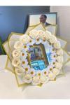 - Zarif beyaz güllerle süslenmiş, her ortama uyum sağlayacak şık bir ayna buketi.