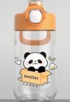 Shotay Çocuk Su Matarası Dayanıklı, Sızdırmaz, Pipetli veya Emzikli Kullanım, Tritan, Panda Figürlü, Unisex 500Ml Turuncu