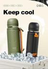 Shotay Durable Termos Matara 304 Paslanmaz Çelik, Vakumlu, Yalıtımlı, Sağlam Unisex 1500Ml Yeşil