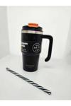 Shotay Termos Bardak Paslanmaz Çelik Outdoor Kulplu Pipetli 650Ml Siyah