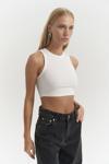 Soldurma efektli boyalı pamuklu, halter yaka, kolsuz, uzun fitilli crop.