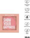 İçerdiği bileşenlerle gün boyu kalıcılık sağlayan Show Your Happiness Blush, 4 sedefli ve 4 mat renk seçeneğiyle yanakları ön plana çıkarır.