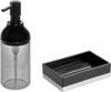 Sıvı sabunluk Füme ve siyah renkli ürün akrilik malzemeden üretilmiştir.Çapı 8cm,boyu 16cm,dir Sabunluk Modern siyah tasarımlı akrilik malzemeli banyo aksesuarıdır.12,7x8,1x3,3cm ebatlarındadır.