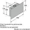 Cihazın genişliği 90 cm'dir. Bu genişlik, geniş mutfaklarda bile etkili bir hava temizleme kapasitesi sunar.