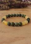 - Yeşim ve sitrin taşlarının uyumlu kombinasyonu, zarif ve göz alıcı bir estetik oluşturur