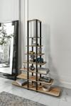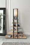 Teknik ölçüler: Genişlik: en alt raf 24cmx100cm, en üst raf 24cmx24cm, yükseklik: 143 cm, raf aralığı: 18 cm, abajur çapı: 17 cm, yüksekliği: 35 cm.