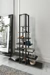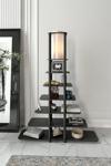 Teknik ölçüler: Genişlik: en alt raf 24cmx100cm, en üst raf 24cmx24cm, yükseklik: 143 cm, raf aralığı: 18 cm, abajur çapı: 17 cm, yüksekliği: 35 cm.