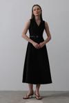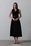 Sıfır Kollu Kemer Detaylı Elbise - Siyah