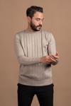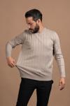 Sıfır Yaka Kendinden Çizgili Likralı Akrilik Mevsimlik Kazak