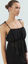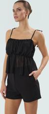 Yaz aylarının vazgeçilmez parçası olacak bu şifon bluz, şıklığı ve rahatlığı bir araya getiriyor. İnce askıları ve basic siluetiyle her vücut tipine uyum sağlarken, hafif ve nefes alan şifon kumaşı gün boyu konfor sunuyor. Kare yakası ve regular kalıbıyla modern ve zamansız bir tarz yaratmanıza yardımcı olur. Crop boyu ile farklı kombinler oluşturarak tarzınıza özgünlük katabilirsiniz. Bu siyah bluz, günlük yaşamınızda, yaz akşamlarında veya özel davetlerde rahatlıkla tercih edebileceğiniz çok yönlü bir seçenektir. Yazın sıcak günlerinde serin ve şık görünmenizi sağlayacak bu bluz, gardrobunuzun en sevdiğiniz parçası olacak.