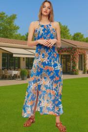 Bu göz alıcı midi elbise, yaz aylarının şıklığını ve rahatlığını bir araya getiriyor. Puantiyeli deseniyle feminen bir hava katan elbise, şifon kumaşı sayesinde gün boyu konfor sunuyor. A kesim kalıbıyla vücudunuzu zarifçe sarar ve özgür hareket etmenizi sağlar. Halter yakası ve kolsuz tasarımıyla sıcak günlerde serin kalmanıza yardımcı olurken, astarı sayesinde de istenmeyen transparanlığı önler.