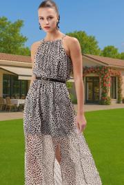 Bu göz alıcı midi elbise, yaz aylarının şıklığını ve rahatlığını bir araya getiriyor. Puantiyeli deseniyle feminen bir hava katan elbise, şifon kumaşı sayesinde gün boyu konfor sunuyor. A kesim kalıbıyla vücudunuzu zarifçe sarar ve özgür hareket etmenizi sağlar. Halter yakası ve kolsuz tasarımıyla sıcak günlerde serin kalmanıza yardımcı olurken, astarı sayesinde de istenmeyen transparanlığı önler.