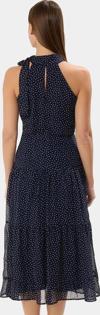 Yaz aylarının şıklığı ve rahatlığını bir araya getiren bu lacivert puantiyeli elbise, gardrobunuzun vazgeçilmezi olacak. Hafif ve nefes alan şifon dokuma kumaşından üretilen elbise, gün boyu konfor sunuyor. A-line kalıbı ile vücudunuzu mükemmel bir şekilde sararak feminen bir görünüm yaratırken, kolsuz tasarımıyla sıcak yaz günlerinde serin kalmanıza yardımcı oluyor. Yakası bağlama detayıyla kişiselleştirilebilen elbise, hem gündüz hem de gece kullanımlarına uygun. Astarlı yapısıyla da ekstra konfor sağlıyor. Midi boyu ile her ortama uyum sağlayan elbise, şıklığı ve rahatlığı bir arada sunuyor. Ürün, %100 polyester kumaştan üretilmiştir ve makinede yıkanabilir.