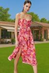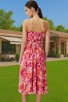 Bu büyüleyici A-kesim elbiseyle, özel günlerinizde kendinizi prenses gibi hissedeceksiniz. Hafif ve akıcı şifon kumaşın zarafeti, canlı çiçek desenleriyle birleşerek göz alıcı bir stil oluşturuyor. Kalp yaka ve ince askılar, feminenliğinizi vurgularken, beldeki zarif gül detayı, silüetinize mükemmel bir şekilde uyum sağlıyor.
