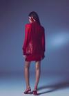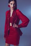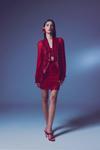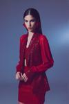 Katlı yaka, iç astarlı, şifon kollu payet ceket.