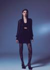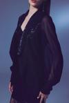 Katlı yaka, iç astarlı, şifon kollu payet ceket.