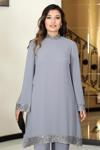Nowa Scarf Pantolon Tunik İkili Takım Aerobin Kumaş Gri