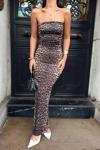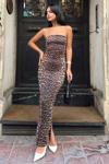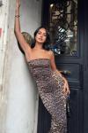 Straplez tasarımı ile omuzları serbest bırakarak feminen bir görünüm sunar.