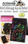Artlantis Sihirli Gökkuşağı Kazıma Defteri A4 20x30 cm 3 Paket 10 Sayfa Scratch Note Spralli Siyah Sihirli Resim Defteri