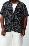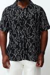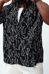 Şık Apaş Yaka Regular Fit %100 Viskon Baskılı Kısa Kollu Salaş Yazlık Büyük Beden Gömlek
