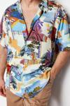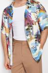 Şık Baskılı Desen Gömlek Yaka Oversize Fit %100 Viskon Baskılı Kısa Kollu Salaş Yazlık Gömlek