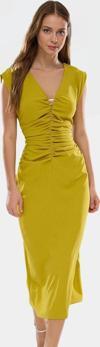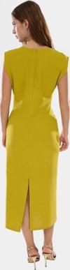Zarif ve modern görünüm sunan bu midi elbise, her kadının gardırobunda olması gereken bir parça. Vücudu saran kesimiyle şıklığınızı ön plana çıkarırken, soft krep dokusuyla gün boyu konforu hissedeceksiniz. Özellikle iş yemekleri, akşam davetleri veya özel günler için ideal bir seçim olan bu elbise, her ortamda dikkatleri üzerinize çekecek. Polyester kumaştan üretilen elbise, kırışma yapmayan yapısıyla pratik kullanım sağlar. V yaka detayı ve büzgülü ön kısmı ile zarif ve şık bir görünüm sunar. Astarsız tasarımı sayesinde vücut hatlarınıza kusursuz bir şekilde uyum sağlar.